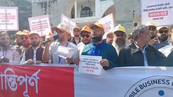 সিলেটে এনআইআর–এর প্র তি বা দে মোবাইল ব্যবসায়ীদের মা ন ব ব ন্ধ ন