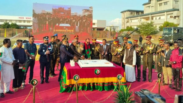 সিলেট বর্ণাঢ্য আয়োজনে সশস্ত্র বাহিনী দিবস উদযাপন নাজমুল কবীর পাভেল সিলেট সেনানিবাসে যথাযোগ্য মর্যাদা, বর্ণাঢ্য আয়োজন ও উৎসবমুখর পরিবেশে উদযাপিত হলো মহান সশস্ত্র বাহিনী দিবস। অনুষ্ঠানের প্রধান অতিথি ছিলেন