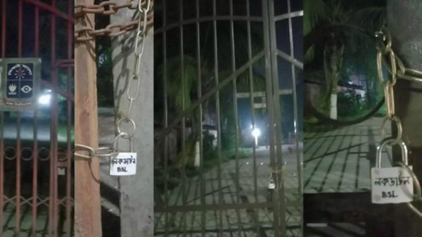 মধ্যরাতে ঢাবির পাঁচ ভবনের ফটকে তালা দিল নি ষি দ্ধ ছাত্রলীগ অনলাইন ডেস্ক ঢাকা বিশ্ববিদ্যালয়ের (ঢাবি) পাঁচটি স্থাপনার মূল ফটকে তালা ঝুলিয়েছে নিষিদ্ধঘোষিত সংগঠন ছাত্রলীগ। আগামীকাল ১৩ নভেম্বরের ‘লকডাউন